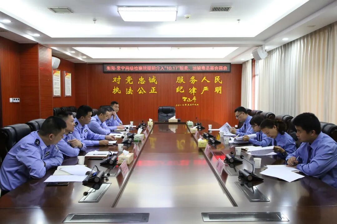10月27日,两级检察机关与常宁市公安局召开提前介入“10.17”贩卖、运输毒品案会商会。检察机关通过听取案件汇报、书面阅卷等方式详细了解案件进展,与公安机关就该案核心证据取证规范性以及法律适用问题进行充分交流,最终确定侦查方向,有效引导侦查机关调查取证。