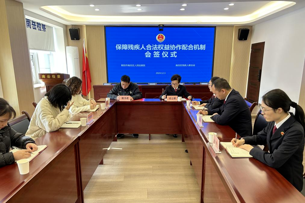 今年12月3日是第33个国际残疾人日。12月3日,南岳区人民检察院与南岳区残联共同签署了《关于建立保障残疾人合法权益协作配合机制的意见》。这也是南岳区人民检察院扎实推进“检护民生”专项行动的又一重要举措。